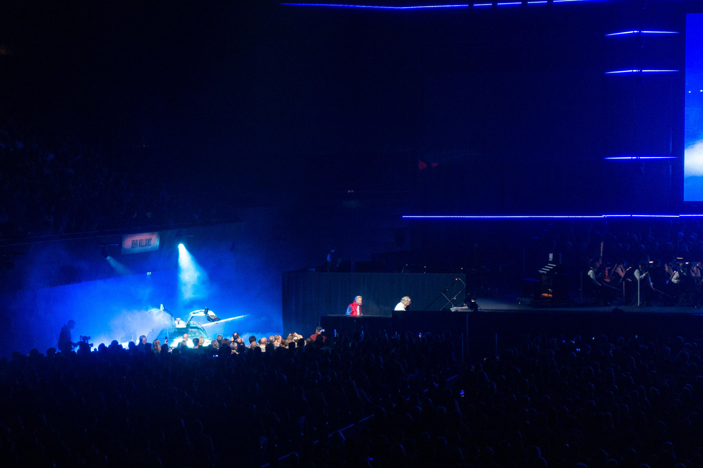 Na het spelen van het traditionele “Also sprach Zarathustra” konden we op het grote scherm een parodie op Back to the Future zien, waarin de twee presentatoren, Daan Schuurmans en Dominic Seldis, ons meenamen op een reis door de tijd waarin ze lieten zien uit welke films we muziek konden verwachten. Ik werd er best enthousiast van, want ik zag veel stukjes uit films die ik nog niet eerder bij deze concerten had gehoord. Toen de film was afgelopen, reden de presentatoren met de iconische DeLorean de zaal binnen en kondigden ze op het podium de muziek uit Back to the Future aan, die voor zover ik weet nog nooit eerder tijdens een concert van De Avond van de Filmmuziek is uitgevoerd.